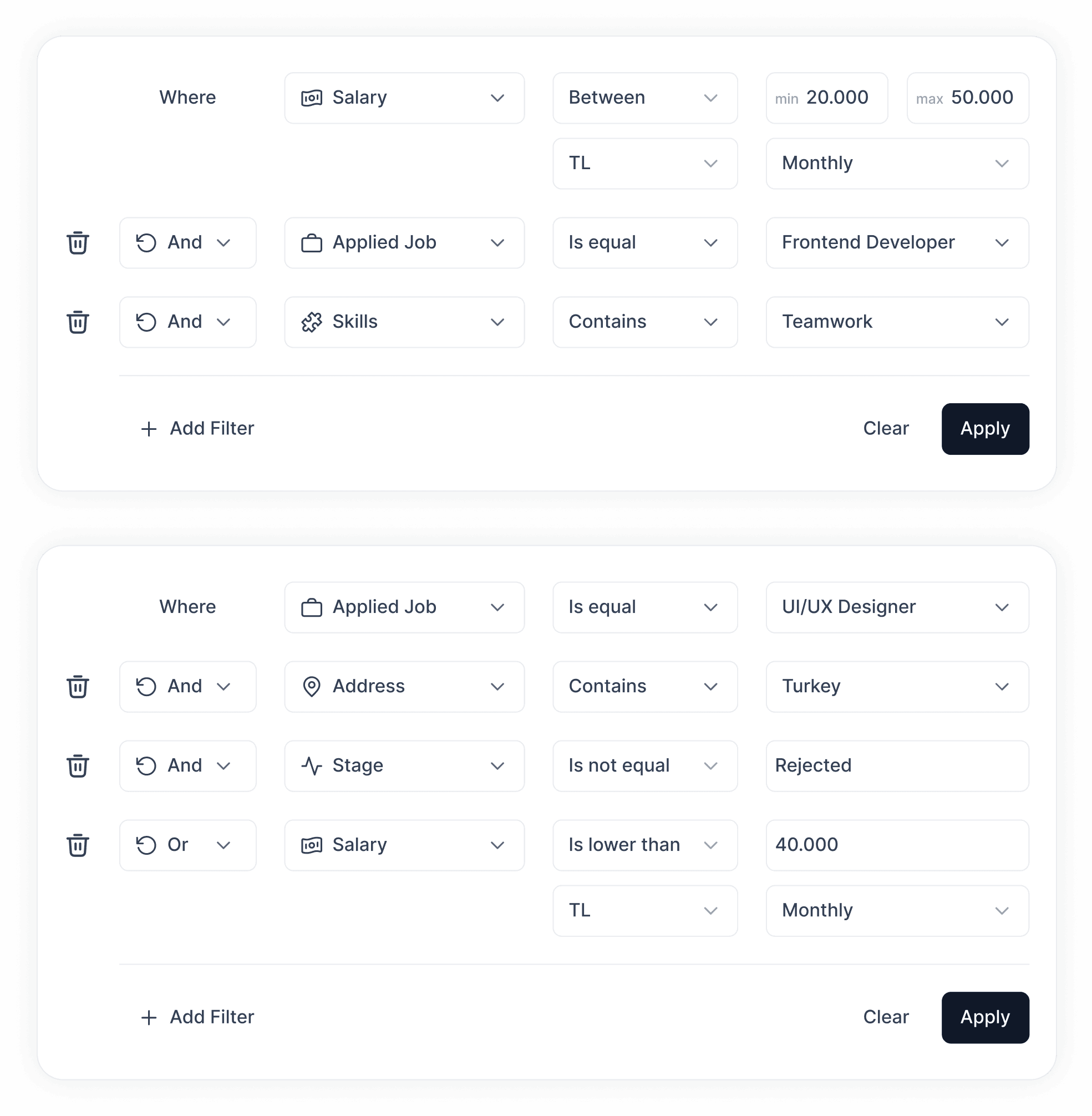 Easily find the right candidates by filtering based on different options, making your hiring process straightforward and personalized.